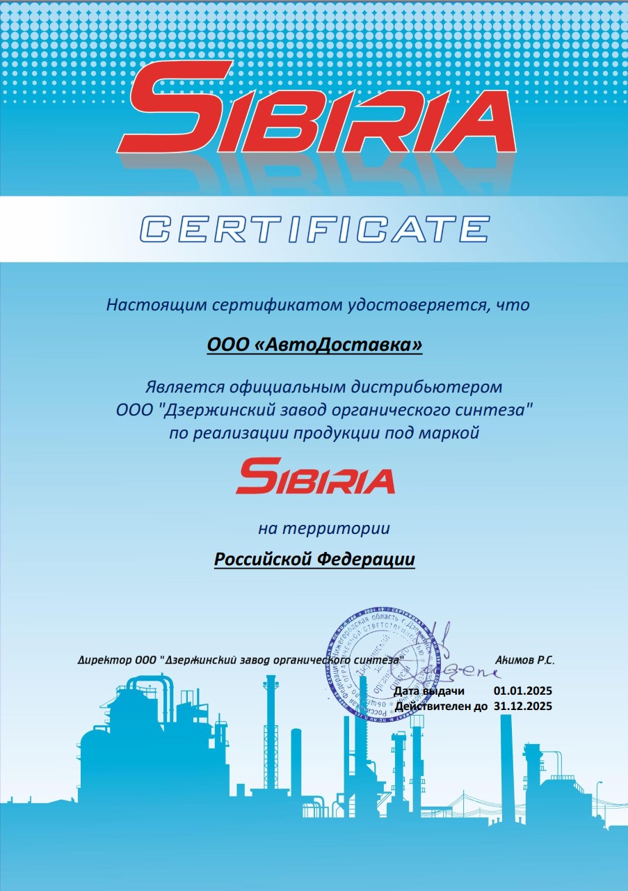 В 2023 году антифризы Sibiria G12+ (-50) 5кг и SIBIRIA G12+ (-40) награждены 2-мя Золотыми Знаками Качества «Всероссийская Марка (III тысячелетие). Знак качества ХХI века».
