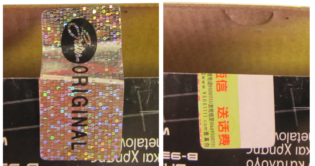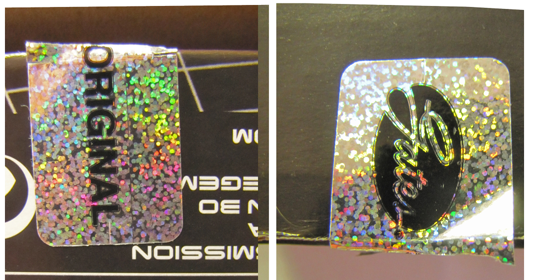 На коробке с подделкой даже наклеена голограмма, и обе голограммы внешне весьма схожи. Однако поддельная короче настоящей приблизительно на 1 см да и отлетела легко как осенний лист...