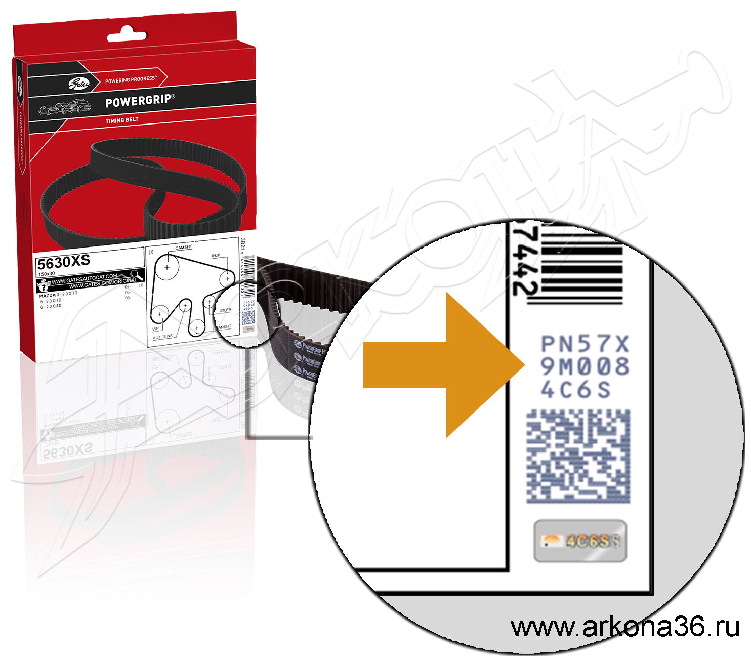 На упаковке с ремнями напечатан уникальный 14-значный буквенно-цифровой код, который можно ввести на сайте gates.com/original для подтверждения подлинности товара.