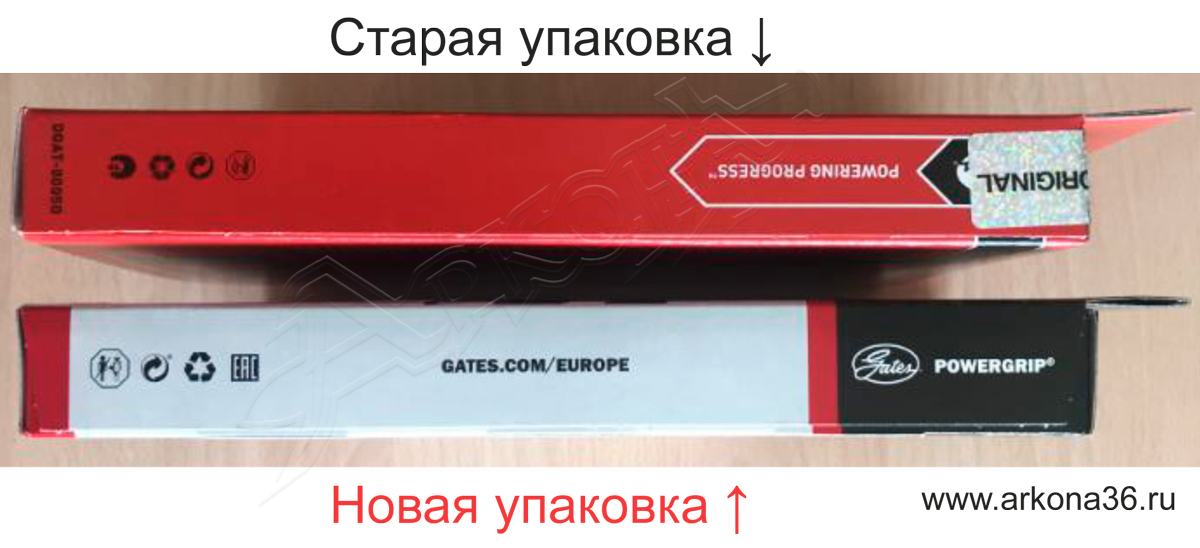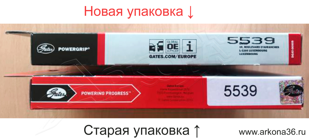 Сравнение новой и старой упаковки Gates для ремня 5539
