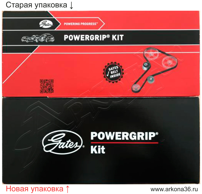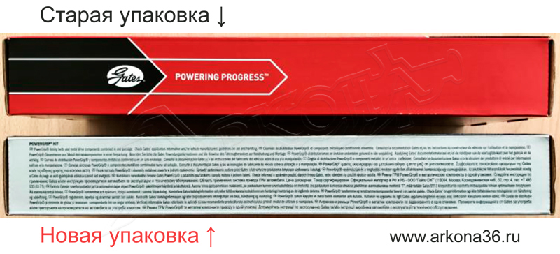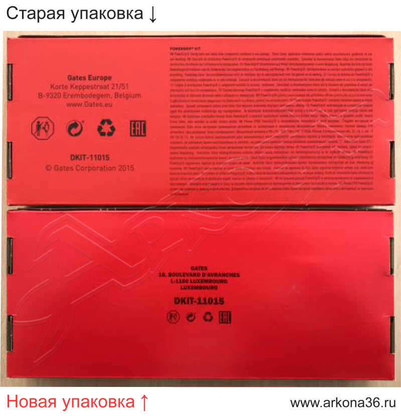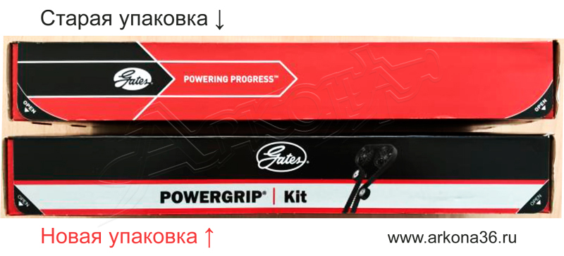 В настоящее время осуществляется переход на упаковку с новым дизайном в соответствии с новым фирменным стилем Gates, в связи с этим происходит замещение продукции в упаковке предыдущего вида, и поэтому в оптовых организациях, а также розничных торговых точках могут присутствовать оба вида упаковок одновременно. Настоящим подтверждаем, что содержание комплектов в разных видах упаковки является полностью идентичным, и при приобретении продукции у официальных дистрибьюторов Gates вероятность подделки исключена.