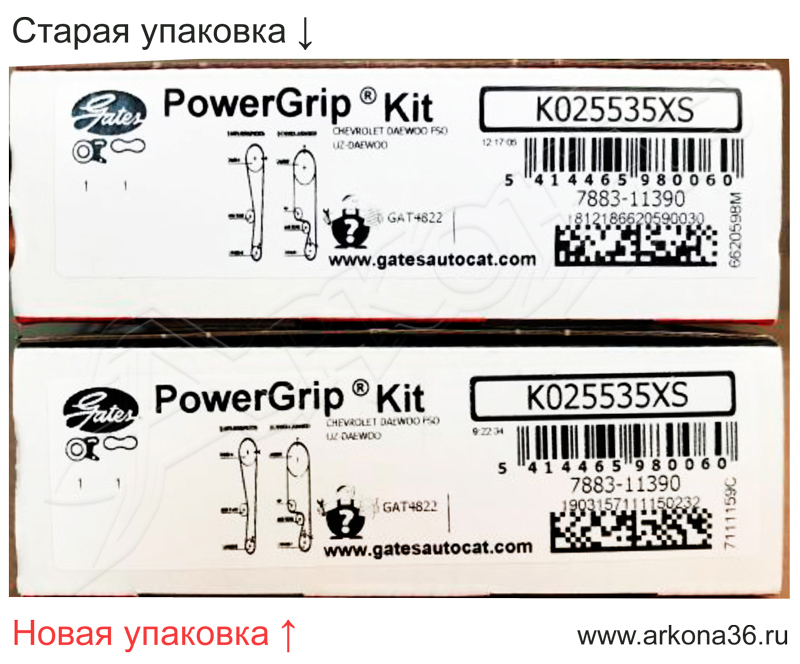 Сравнение новой и старой упаковки Gates для ремкомплекта K025535XS