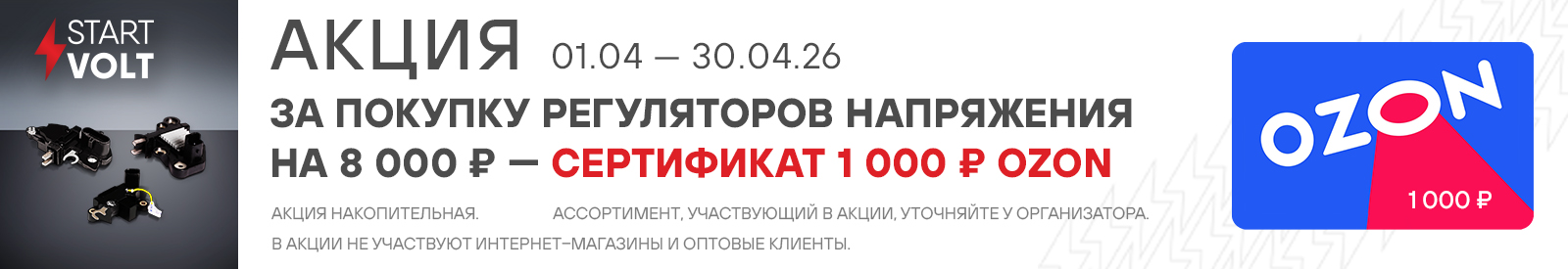 Акция STARTVOLT. Сертификат 1000 баллов КарвильШоп в подарок