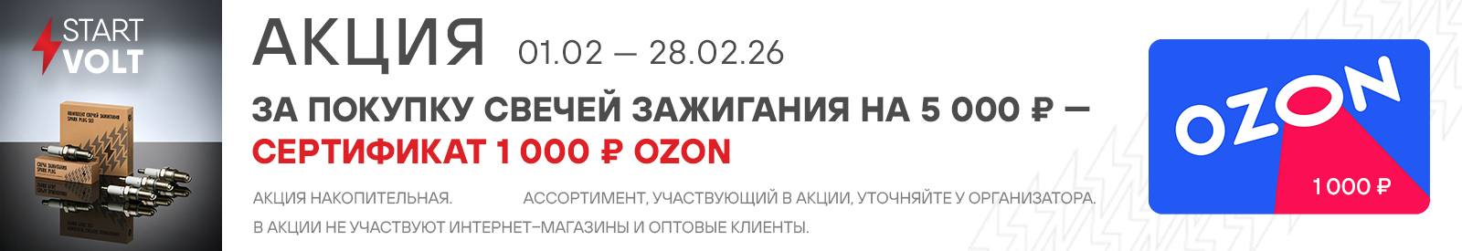 Акция STARTVOLT. Сертификат OZON на 1000 руб. в подарок