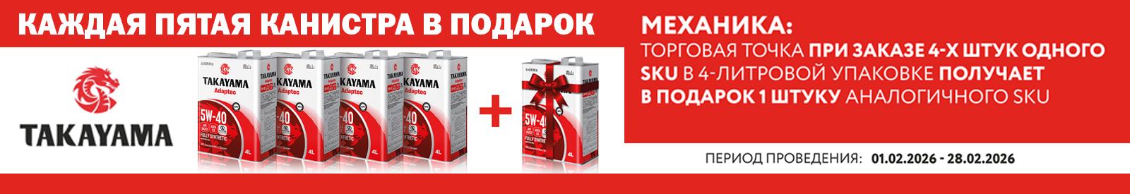 Акция TAKAYAMA. Пятая канистра в подарок
