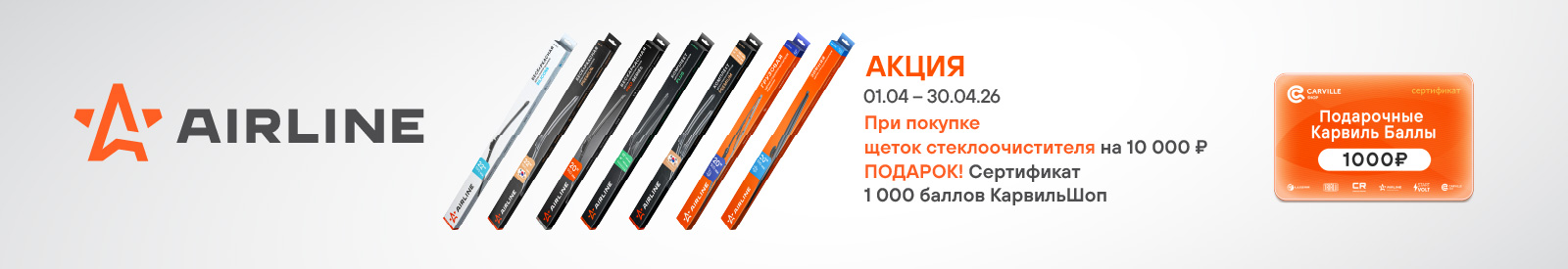 Акция AIRLINE. Сертификат 1000 баллов КарвильШоп в подарок