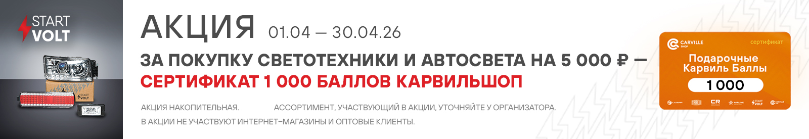 Акция STARTVOLT. Сертификат 1000 баллов КарвильШоп в подарок