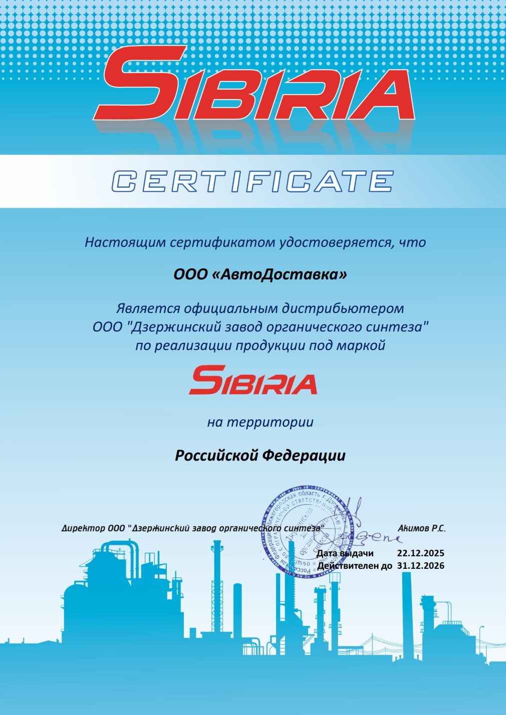 ООО «ДЗЕРЖИНСКИЙ ЗАВОД ОРГАНИЧЕСКОГО СИНТЕЗА» - один из крупнейших в России производителей охлаждающих и стеклоомывающих жидкостей.