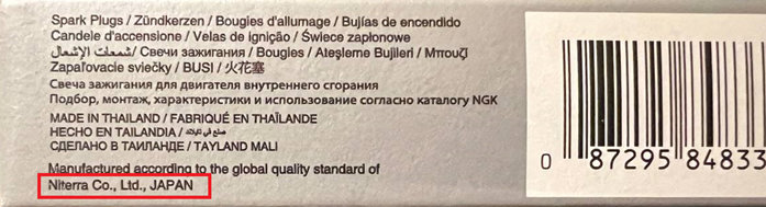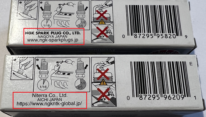 Важно: с 2023 года у свечей зажигания NGK изменился дизайн упаковки — надписи на индивидуальных упаковках свечей стали радужного, а не чёрного цвета, как это было раньше. (На текущий момент оба варианта можно встретить на Aftermarket) Также изменилось наименование производителя: было NGK SPARK PLUG CO LTD, стало NITERRA CO LTD.