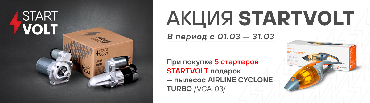 Механика акции: в период проведения акции за покупку пяти стартеров STARTVOLT вы получаете пылесос Airline Cyclone Turbo.