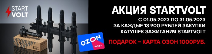 Механика акции: За каждые 13 900 рублей закупки катушек зажигания STARTVOLT подарок - Карта OZON 1000 руб.